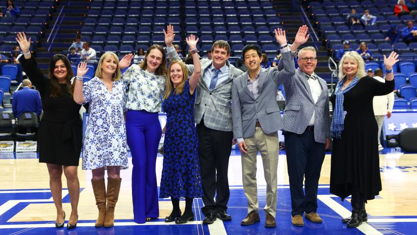 This year's recipients were notified of the award during surprise visits to their classrooms and offices. The 2025 Great Teachers were honored Tuesday night at the UK Alumni Association Great Teacher Award Recognition Dinner at the Central Bank Center in Rupp Arena in Lexington. Each will receive a $4,000 stipend, and they were recognized during the LSU vs. Kentucky men’s basketball game that evening.