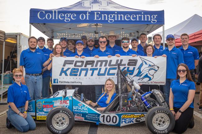 The UK Formula SAE team, also called the Formula Kentucky team, is a College of Engineering student organization with 60 members who engineer and fabricate a small Formula-style race car.
